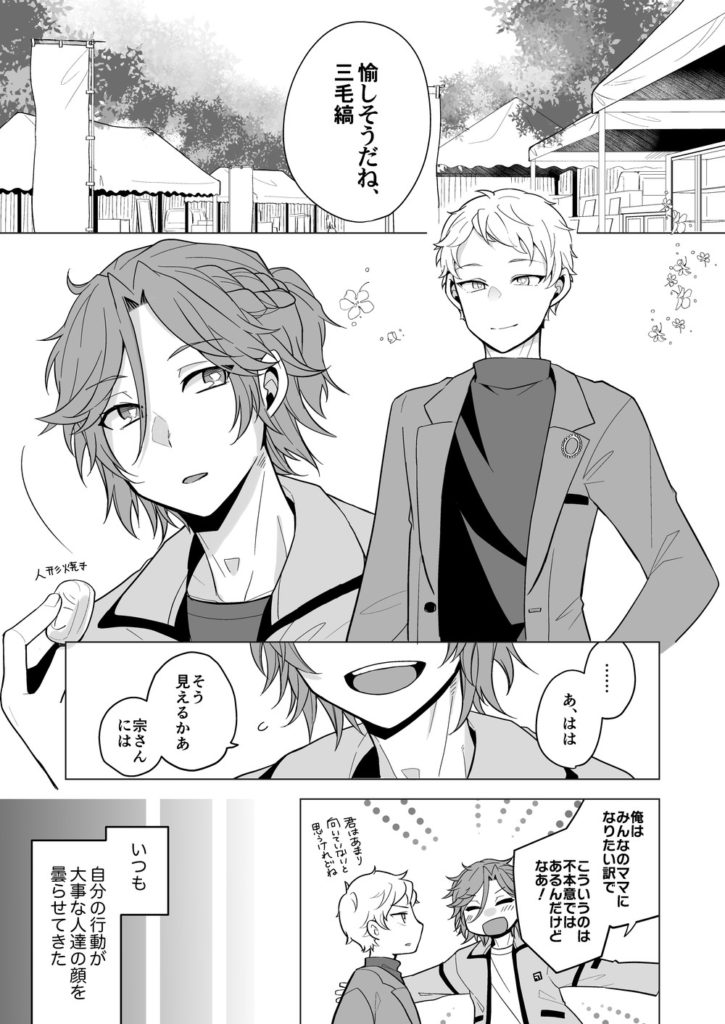 骨董で、割とみんなに苦言を呈されているママの今のあり方を斎宮がほとんど否定しなかったのが印象的だったんですよね。ママの生い立ちや現状をある程度把握した上で、彼を利用しようという意図などもなく、単に今の君は愉しそうだねって言ったことにびっくりしたというか。嫌みとかこき下ろしたりはしていたし、何を目指しているか曖昧な状況を叱ったりはしていましたけど、傷つけられた割には敵対的ではなかったように思います。ママにはママのことを大事に想ってくれている人たちがたくさん居るし、本人もちゃんとそれを分かっている。とはいえその人たちにはあまり現状を肯定されていない様な状況なので、自分の言動が全て裏目に出ていることを本人も分かっているとはいえ、全て否定されるとそれはそれで澱が溜まっていくし、肯定されると救われる部分もあるんじゃないかなと思う………というのがママしゅにどっぷりいったきっかけなんですよね~みたいな漫画を描きたかったんですが、うまくできたかどうかはちょっと自信が無いところ。